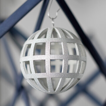 Die beweglich verbundenen Streben bilden eine präzise, geometrische Struktur rund um die Leuchterachse. Mit wenigen Handgriffen lässt sich Form und Größe individuell anpassen – ideal für flexible Dekorations- und private Nutzungskonzepte. Die Pendelkette mit Hängedrehlager ist sicher mit der Raumdecke oder einer Traverse verbunden. In dieser stabilen Position ist eine Gefährdung von Kindern oder Tieren ausgeschlossen.